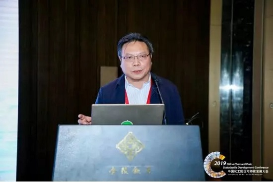 1.南京市江北新区化工产业转型发展管理办公室副调研员曹明华做了“化工园区固废全过程管理的创新与实践”的主题发言。